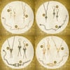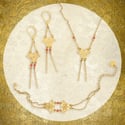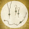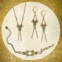 Bijoux en laiton finition vieux bronze ou or, marqueteries de bois teinté.