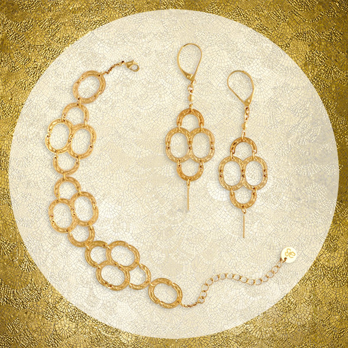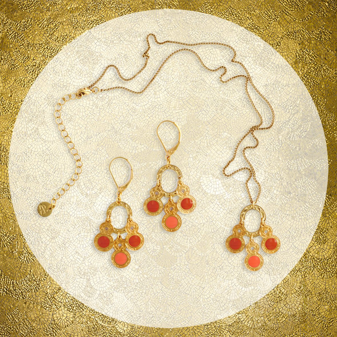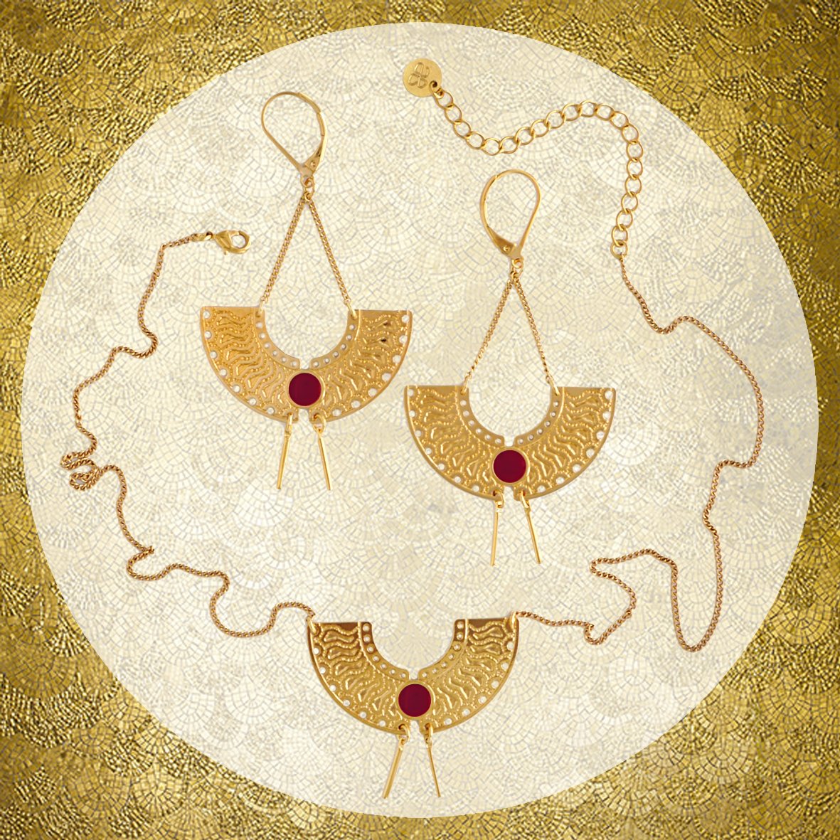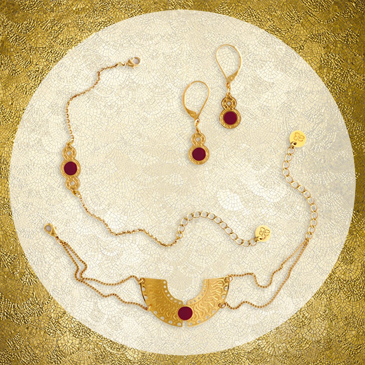 Bijoux en laiton gravé finition or avec résine teintées
