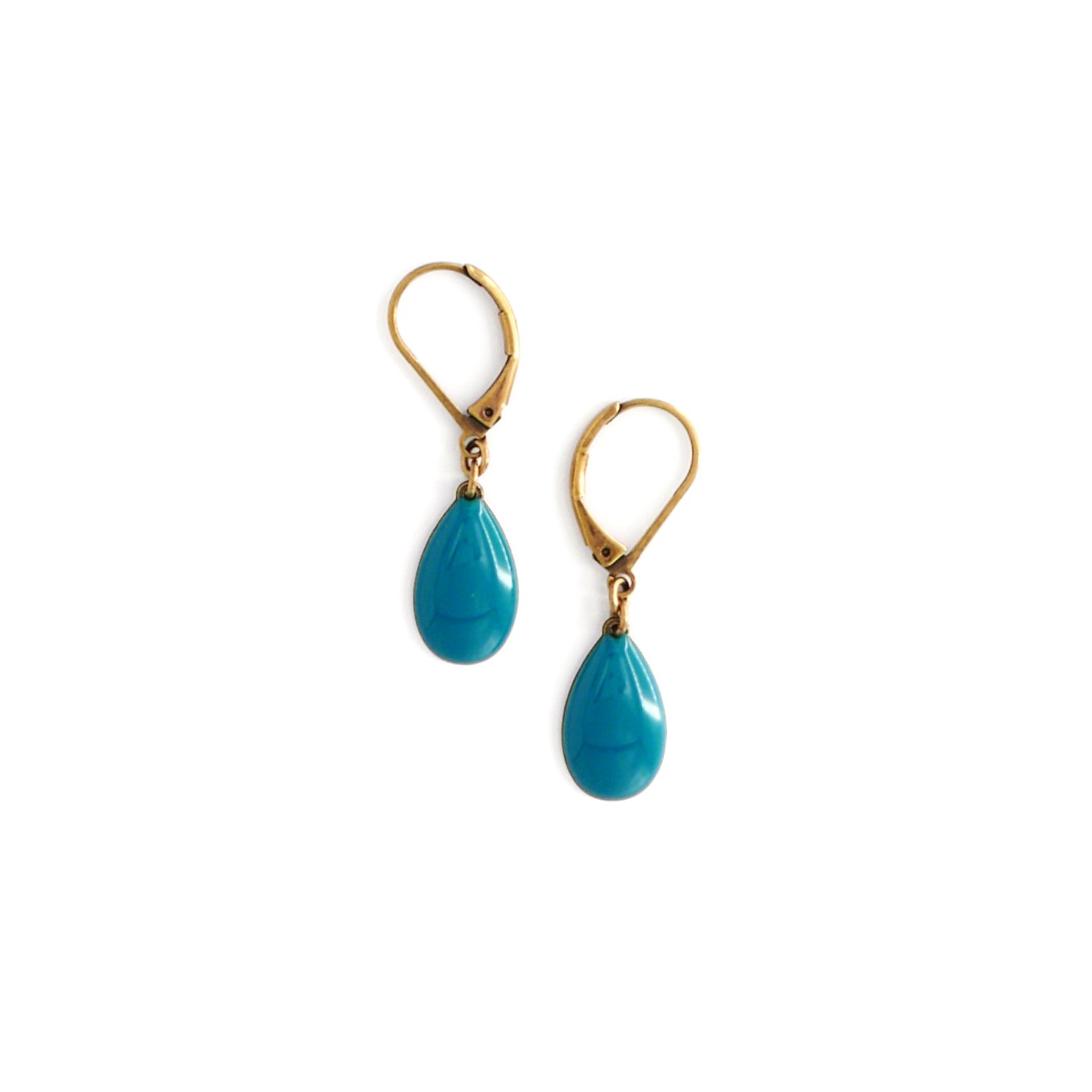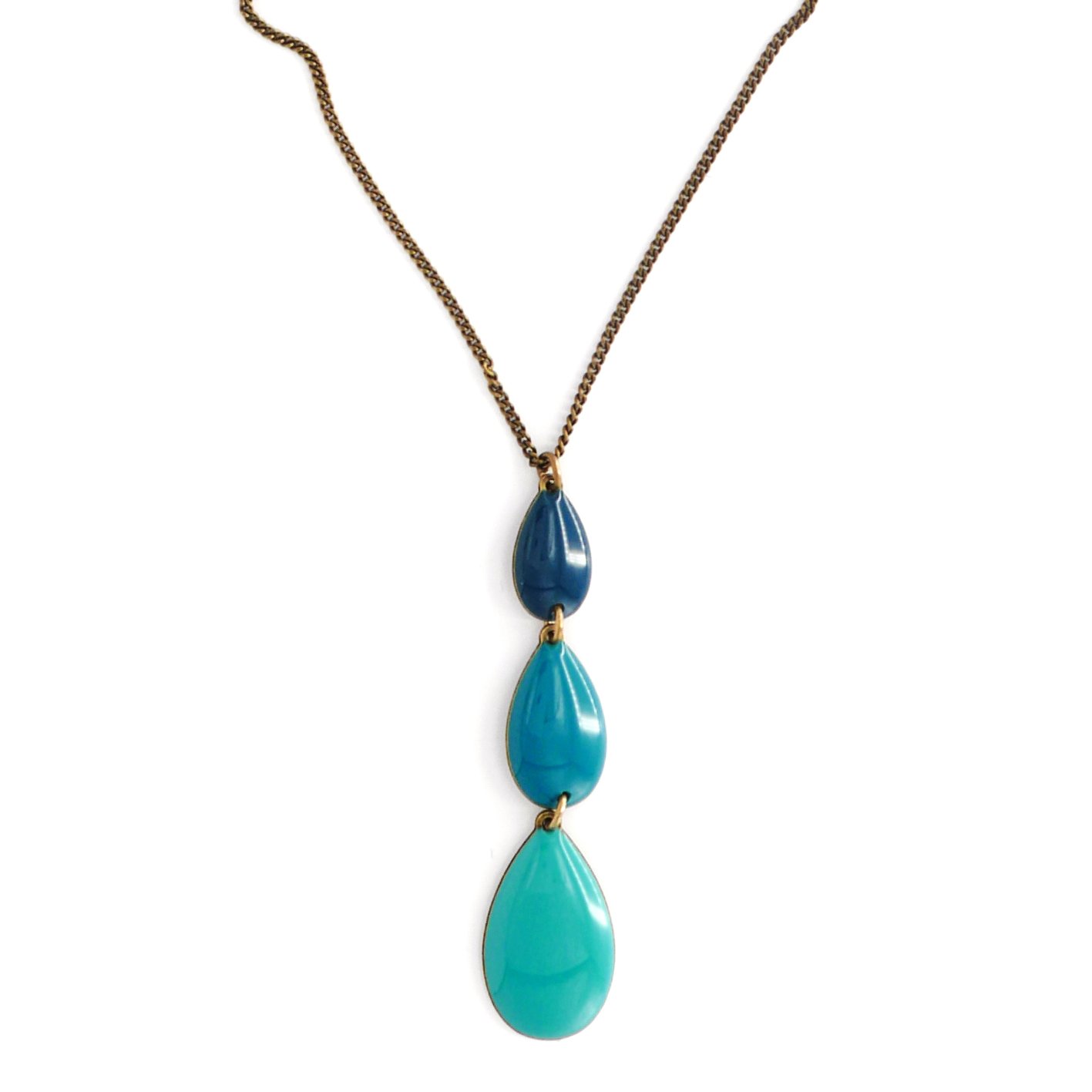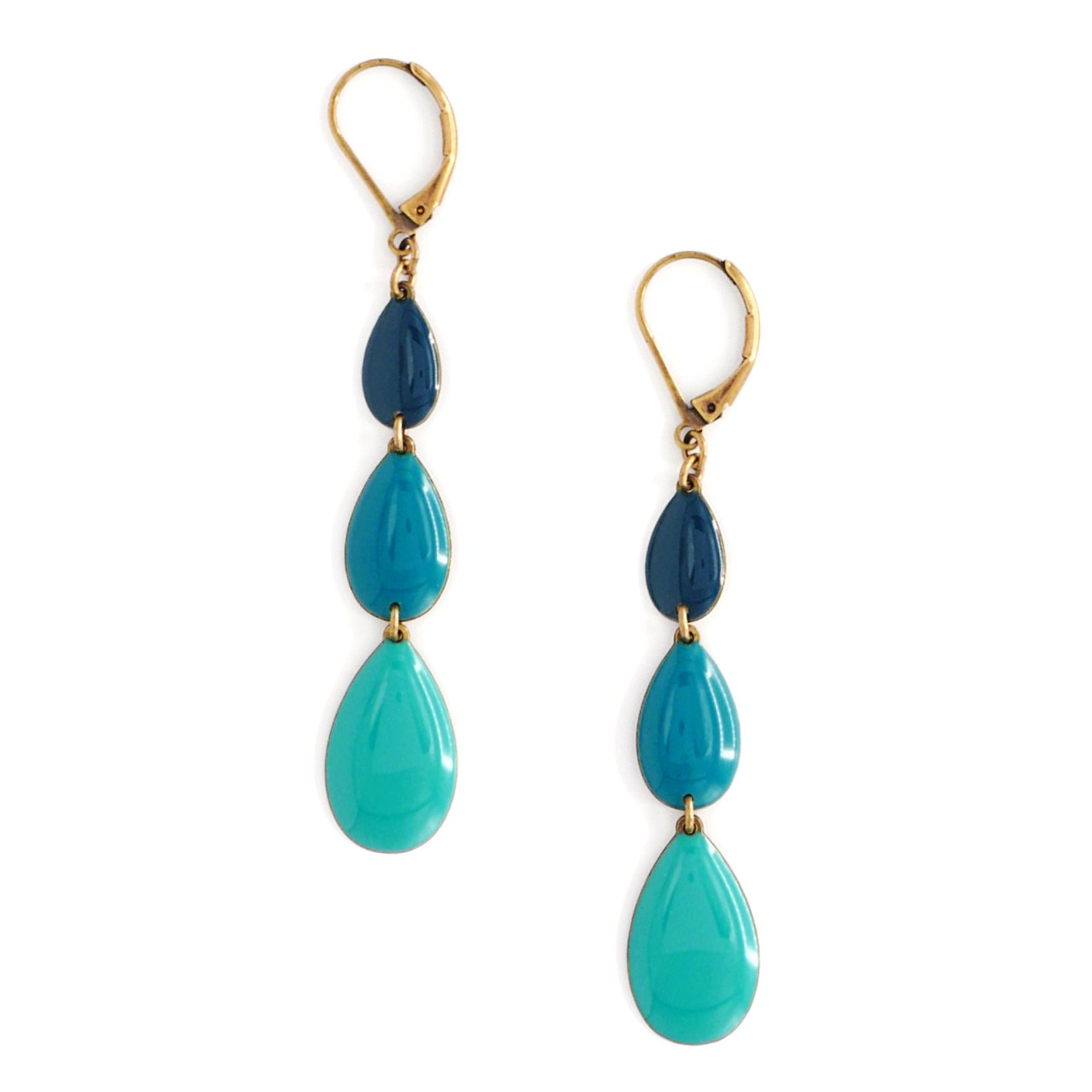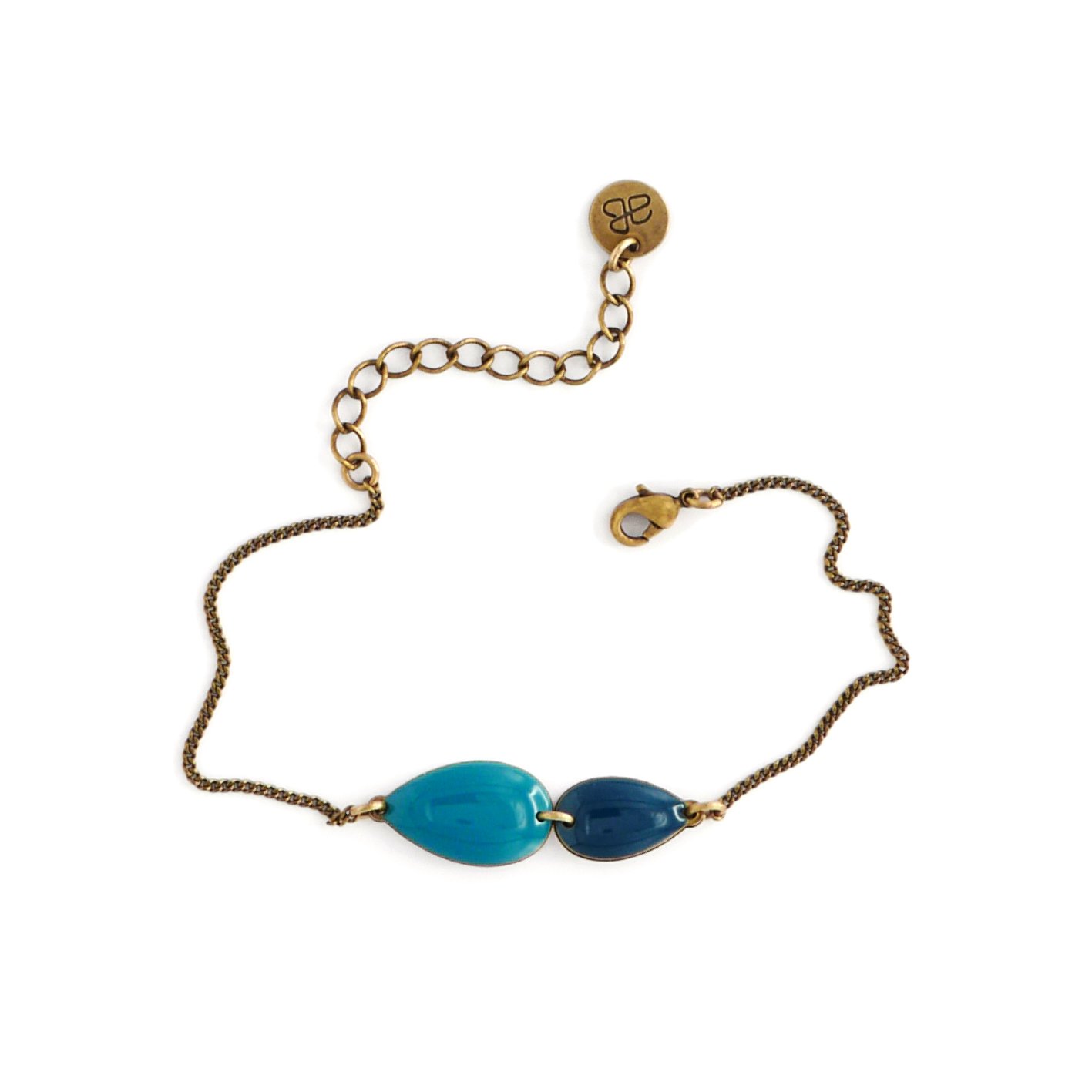 Bijoux en laiton gravé finition vieux bronze et résine couleur camaïeu de bleus et nacré.