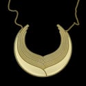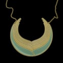 Collier en métal gravé finition vieux bronze et résine colorée.