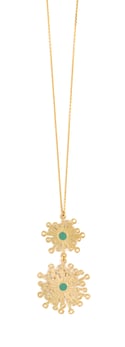 Bijoux en laiton gravé finition or et résine couleur céladon.