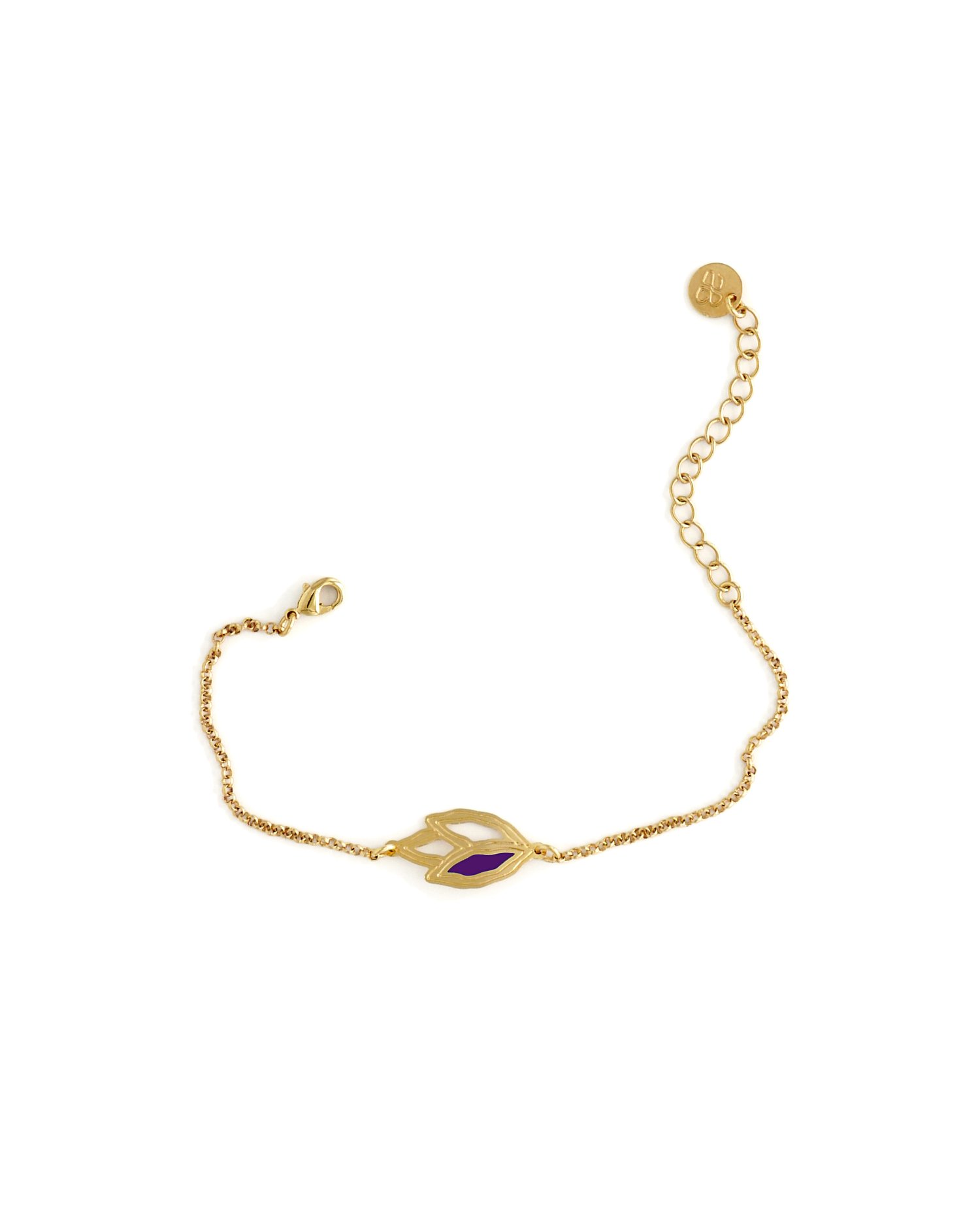 Bijoux en laiton gravé finition or, résine couleur violet