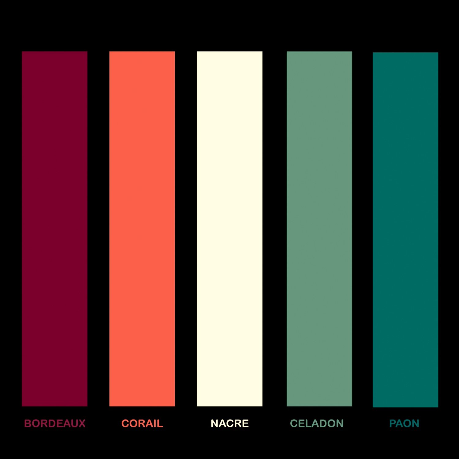 Couleurs disponibles : bordeaux, corail, nacré, vert céladon et bleu paon.