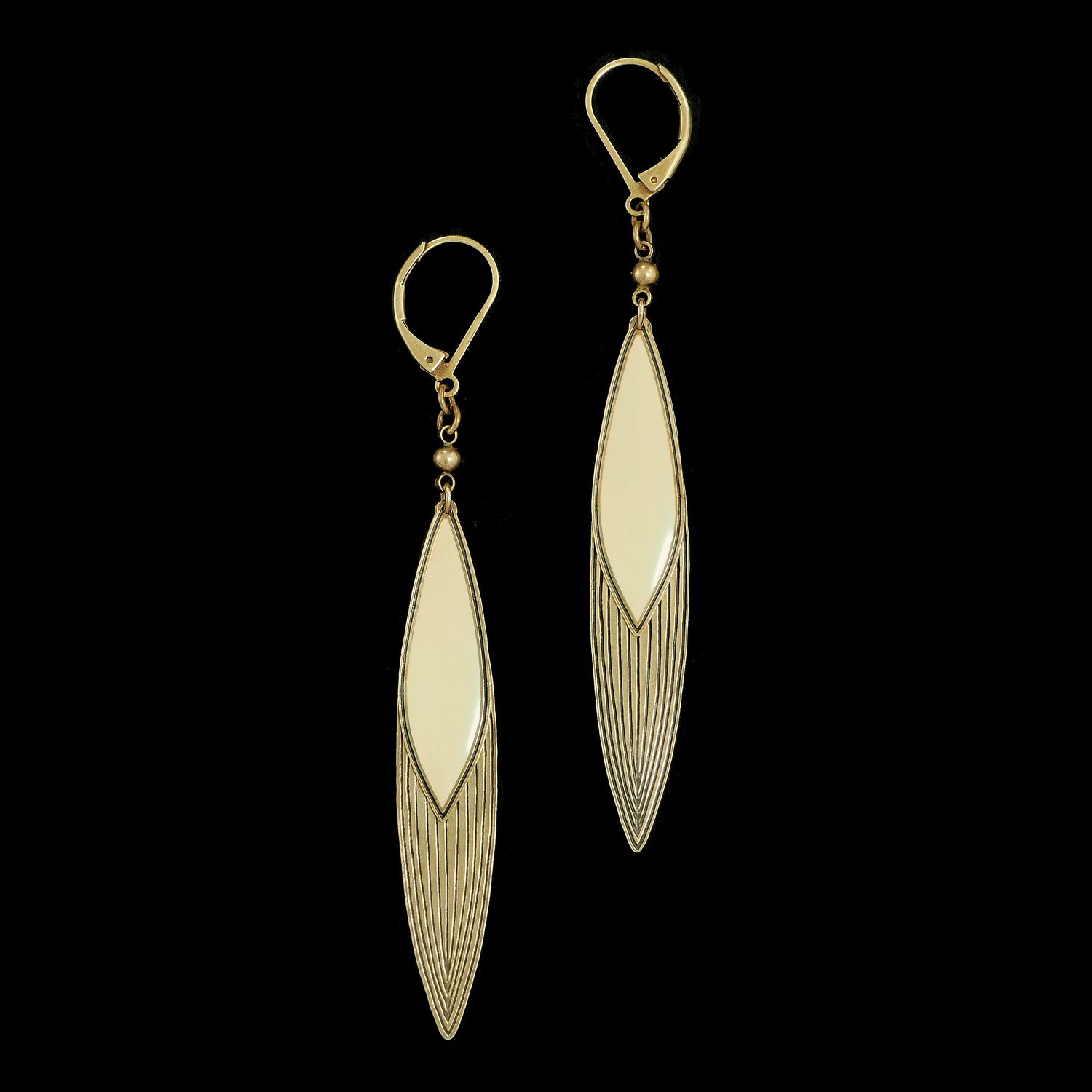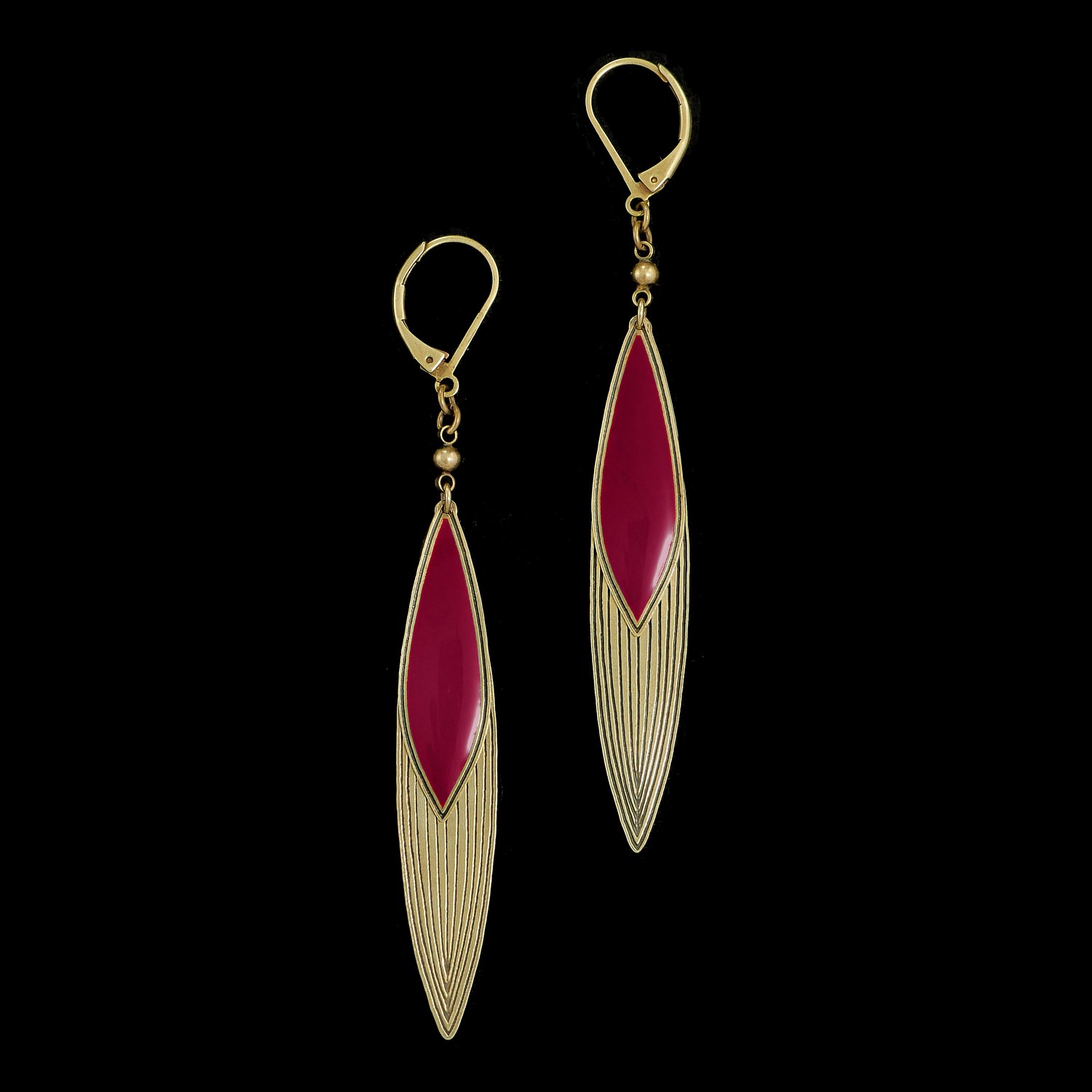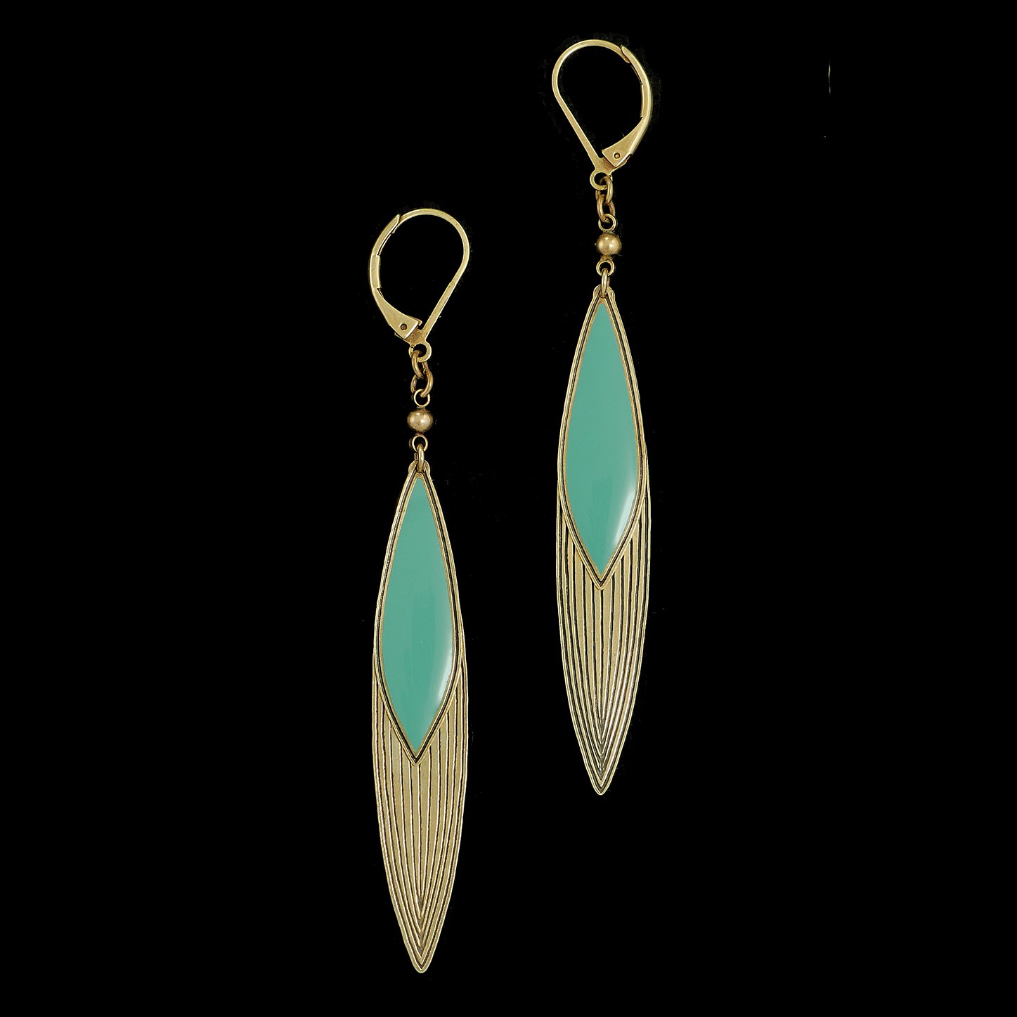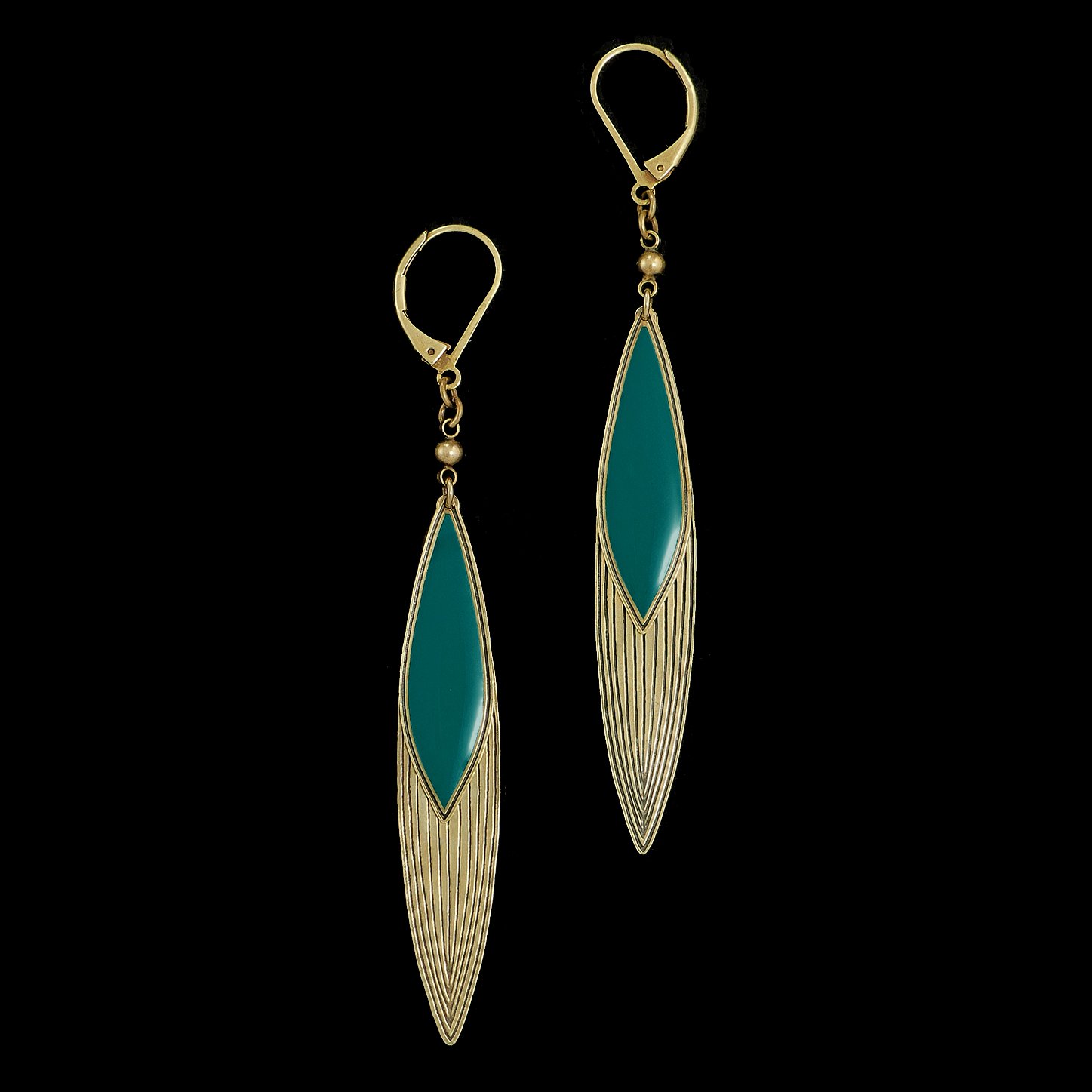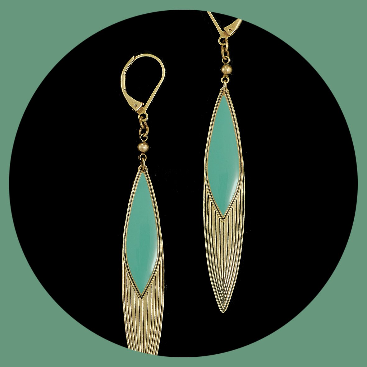 Boucles en laiton finition vieux bronze et résine colorée.