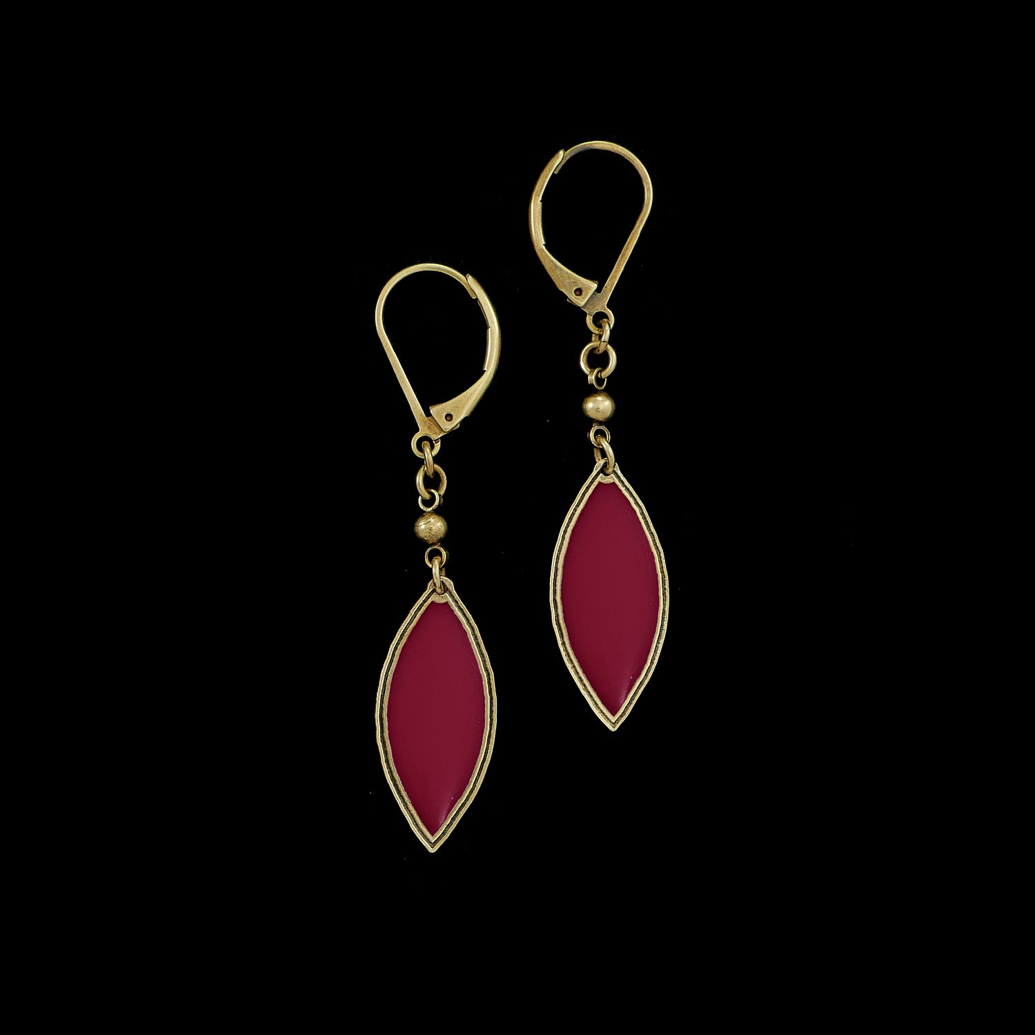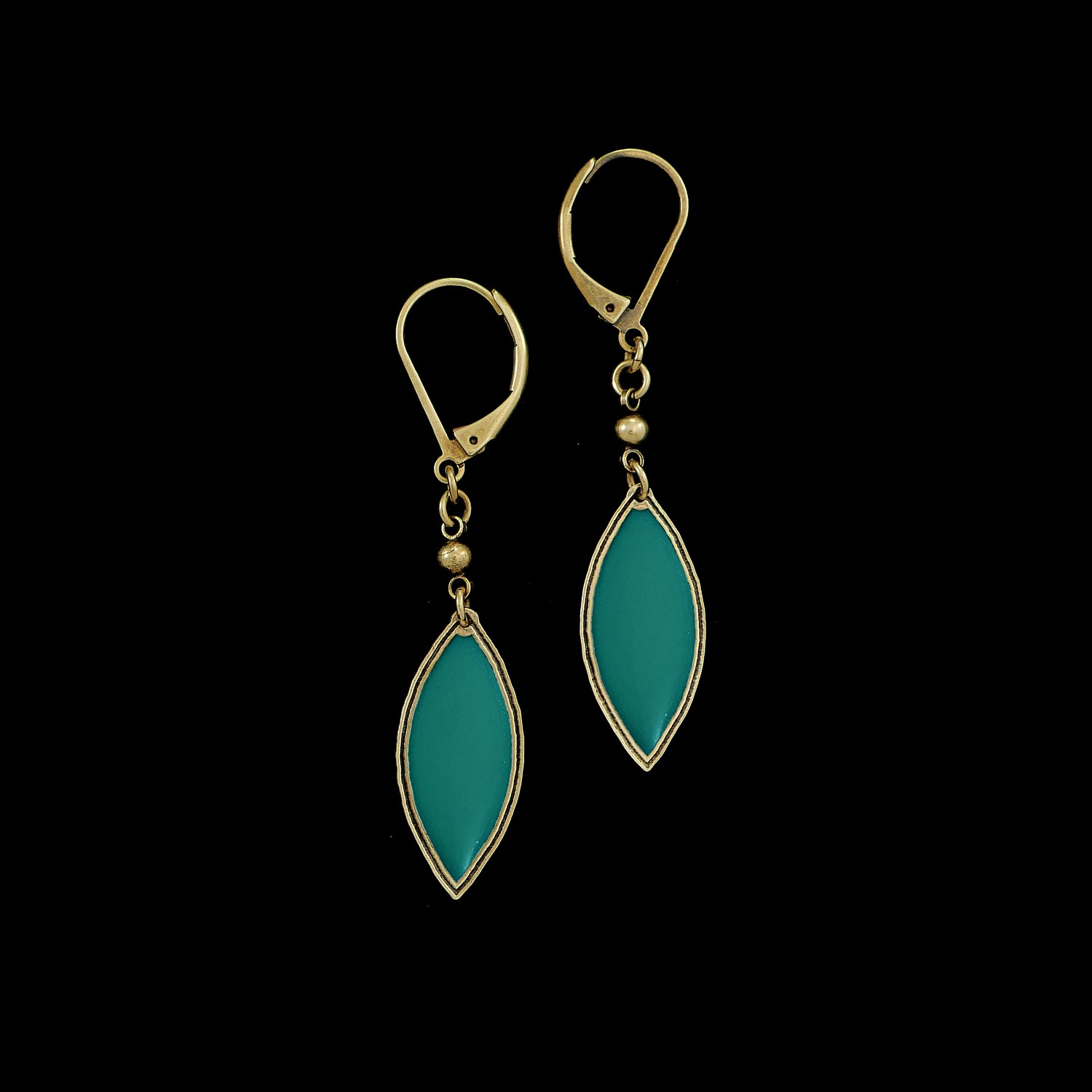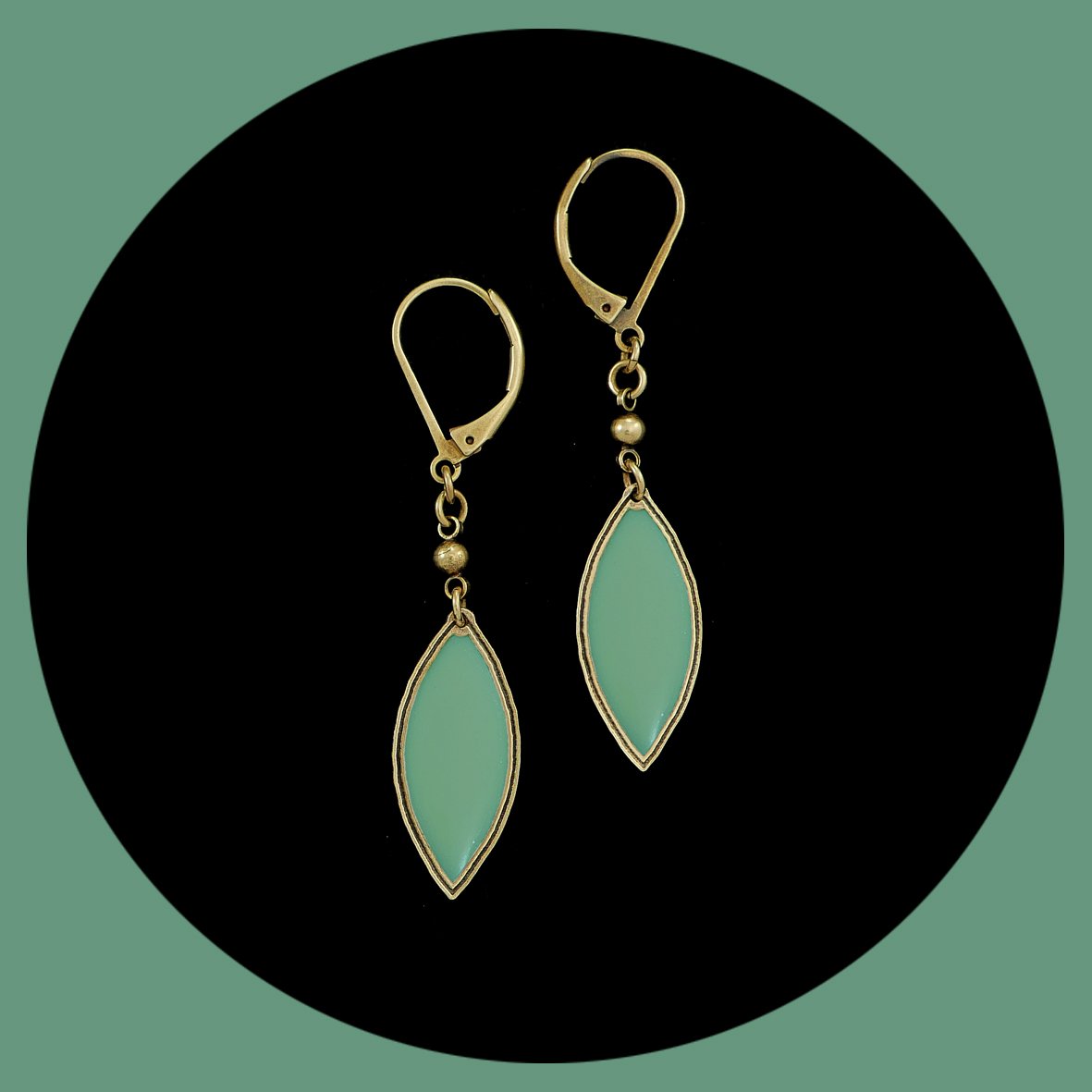Boucles en laiton finition vieux bronze et résine colorée.
