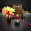 Bijoux en laiton gravé finition bronze, résine couleur mangue ou bleu paon et perles colorées :