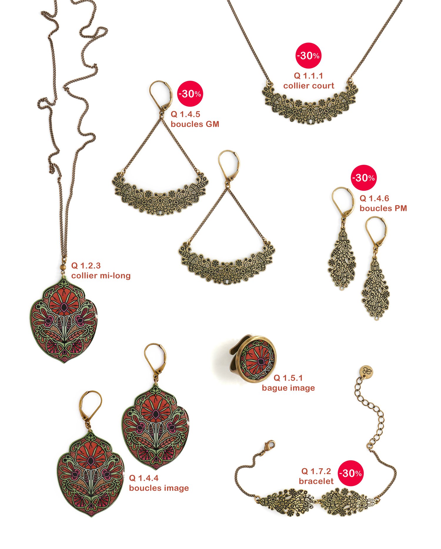 Bijoux en laiton gravé finition vieux bronze et inclusions d'image sous résine